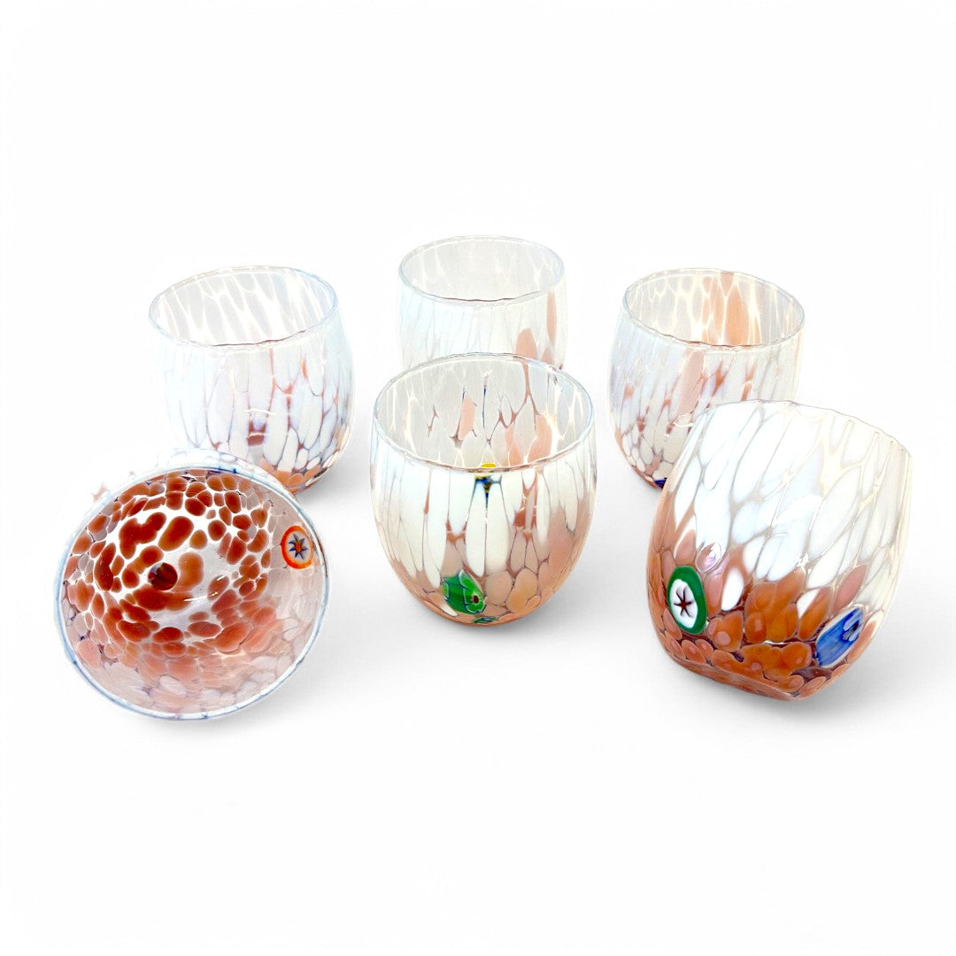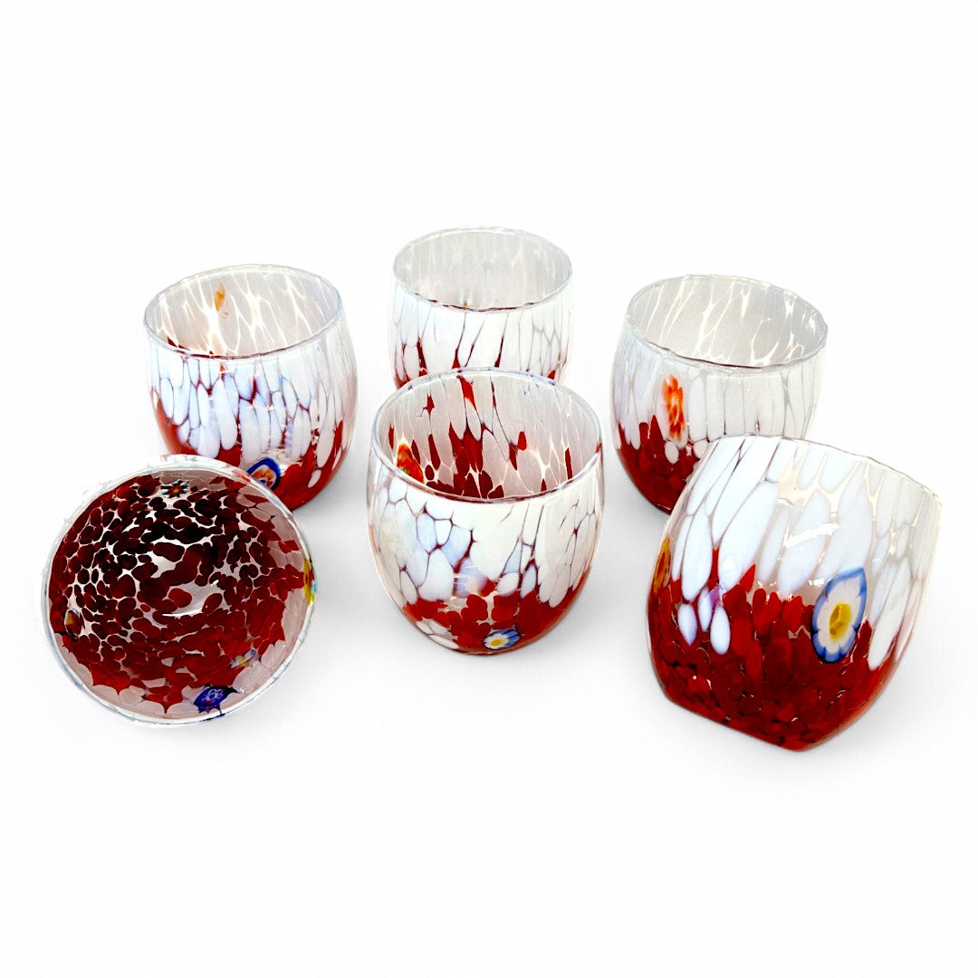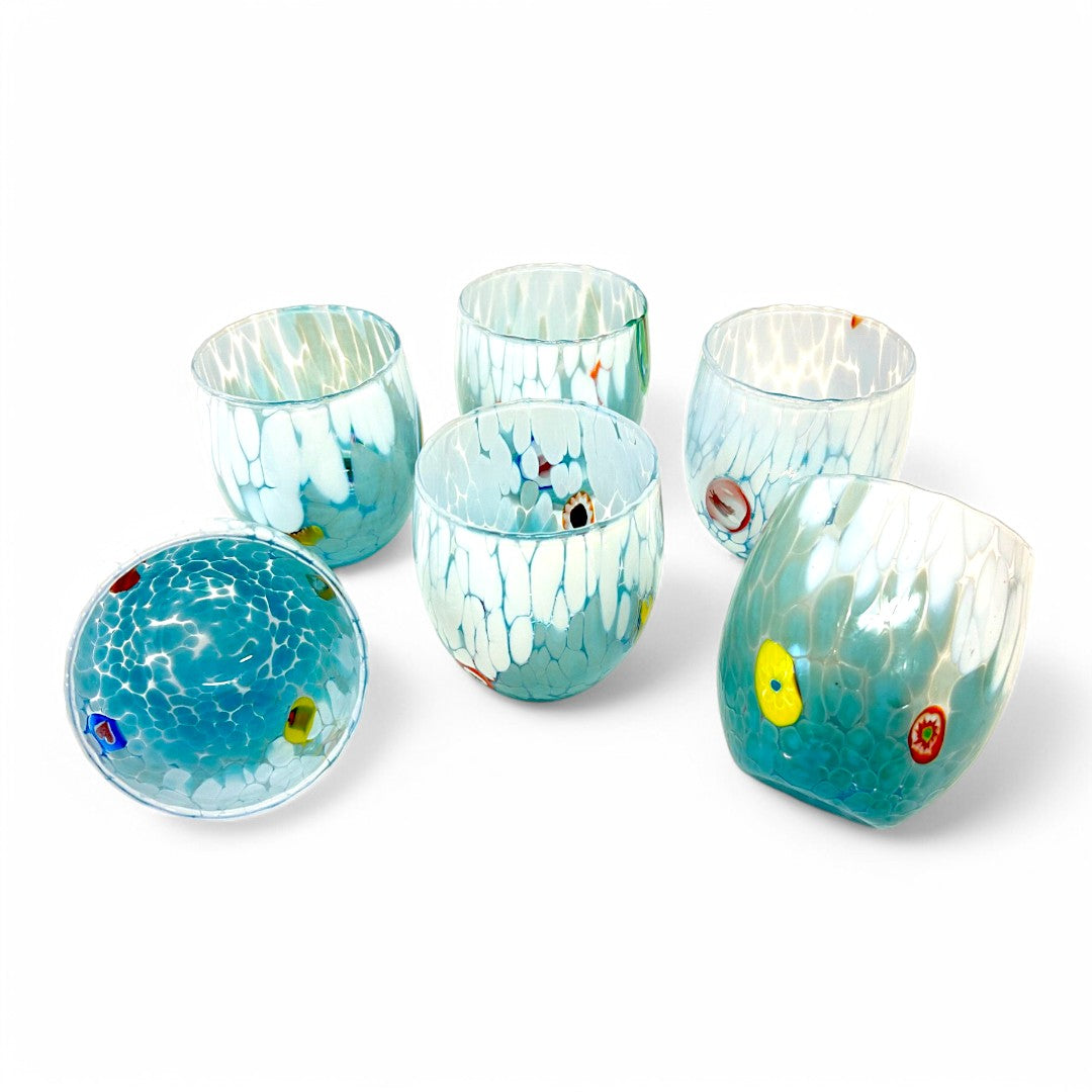 6 Bicchieri Acqua Bicolor in Vetro Soffiati e Lavorati a Mano con Murrine di Murano, linea “I Colori di Murano” 320 ml. Made in Italy