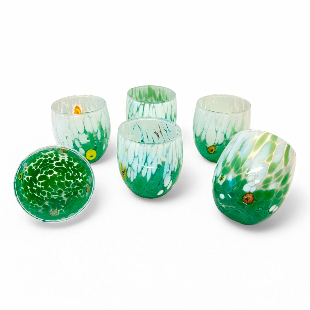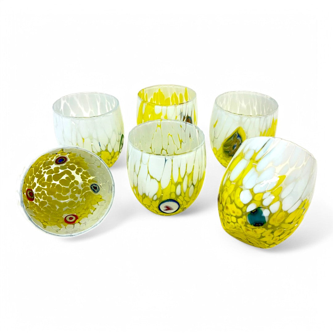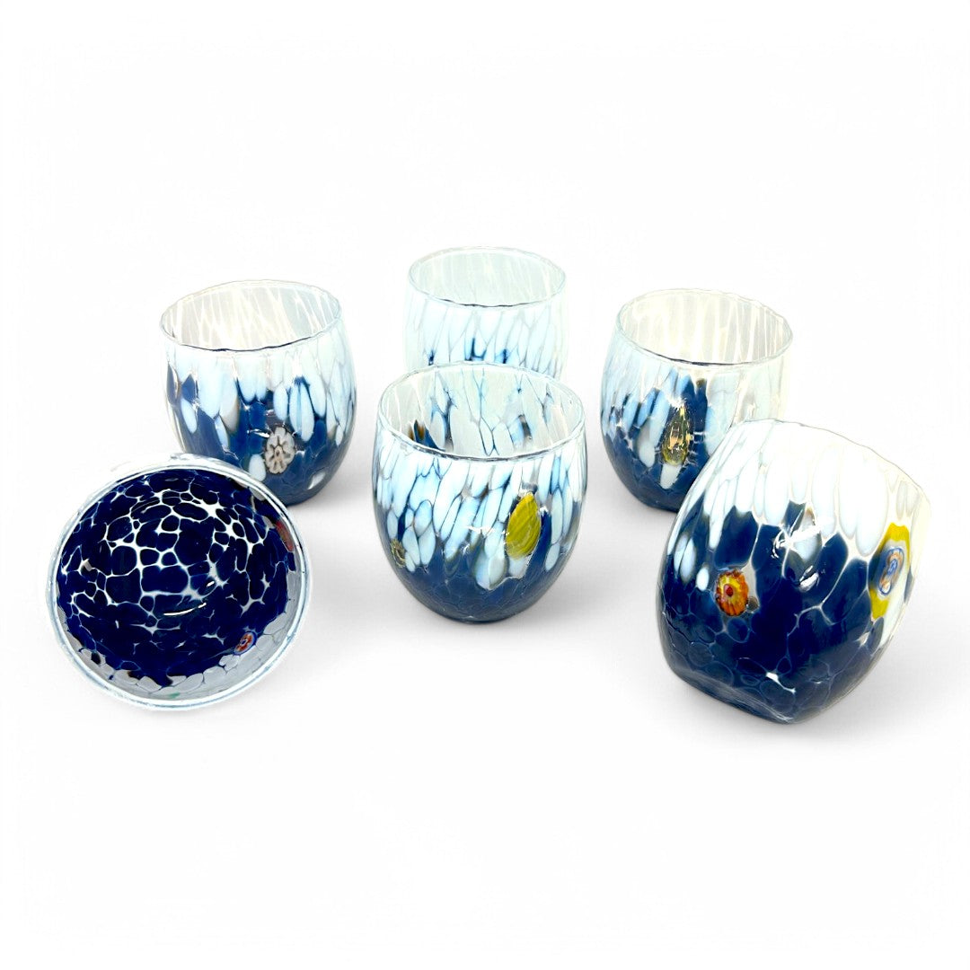 6 Bicchieri Acqua Bicolor in Vetro Soffiati e Lavorati a Mano con Murrine di Murano, linea “I Colori di Murano” 320 ml. Made in Italy