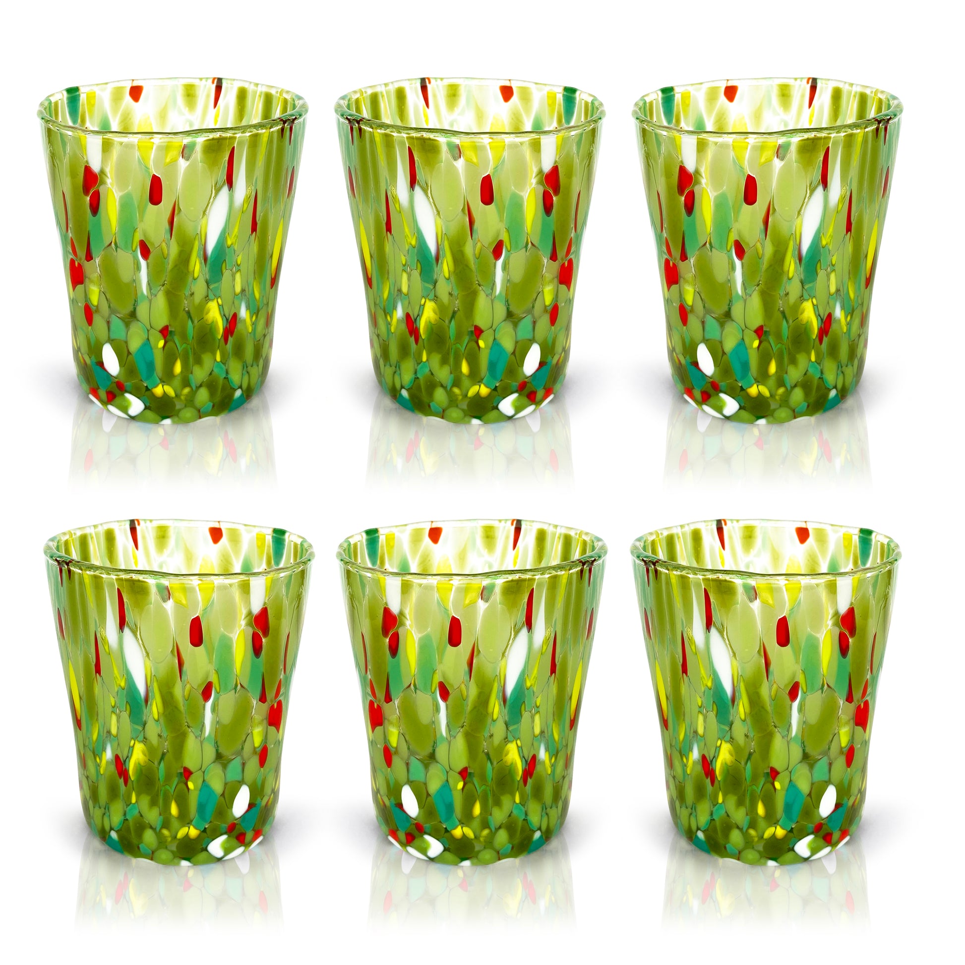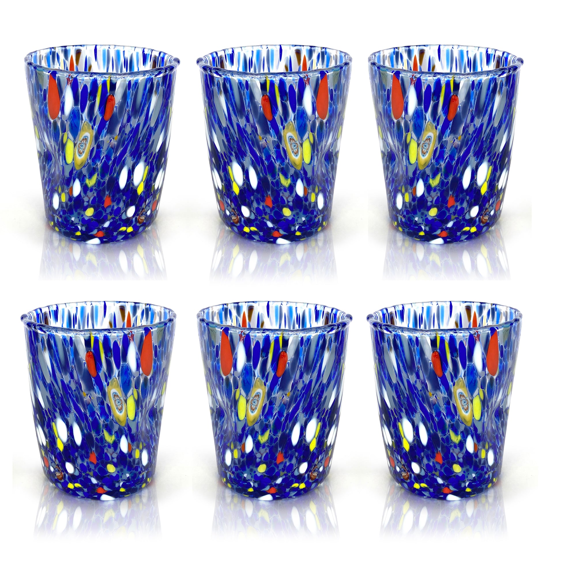 6 Bicchieri Tumbler Colombina in Vetro Soffiati e Lavorati a Mano con Murrine di Murano, linea “I Colori di Murano” 350 ml. Made in Italy
