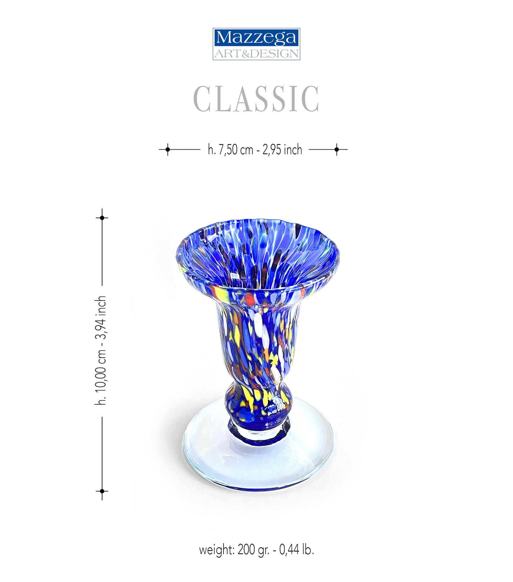 2 Candelabri Classic in Vetro Soffiati e Lavorati a Mano con Murrine di Murano, linea “I Colori di Murano” Made in Italy